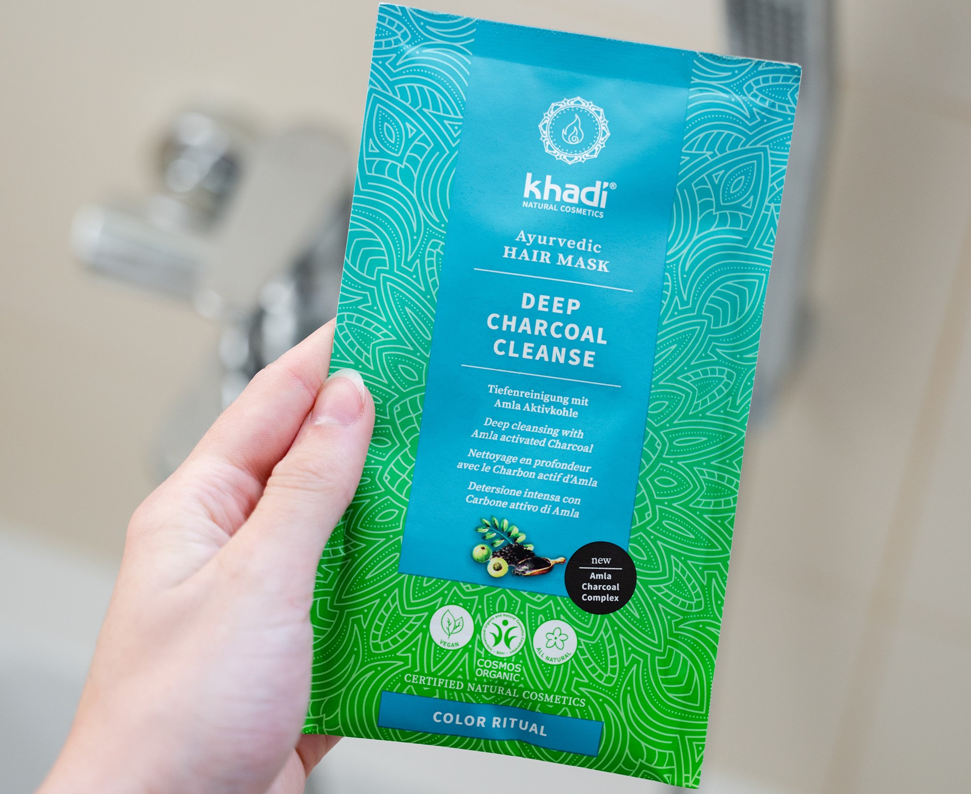 Práve umytie vlasov predstavuje prvý krok v rámci konceptu Khadi Color Cycle a prípravy na farbenie. Pre tento účel bol vyvinutý špeciálny, hĺbkovo čistiaci šampón – Khadi šampón Deep Cleanse. Pripravuje Vaše vlasy na farbenie a slúži na použitie pred každým z Vašich farbení, teda aj v prípade, že sa o vlasy staráte čisto iba pomocou Khadi prírodnej kozmetiky. Vlasy a vlasovú pokožku čistí intenzívne a pritom jemne. Výrazne čierna farba Khadi šampónu Deep Cleanse je daná obsahom aktívneho uhlia a vlasy nijako nefarbí.
